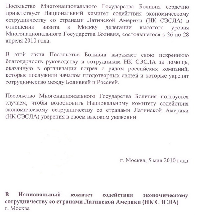 7 мая 2010 г. в НК СЭСЛА прошла деловая встреча c Послом Боливии в РФ г-жой Марией Луисой Рамос