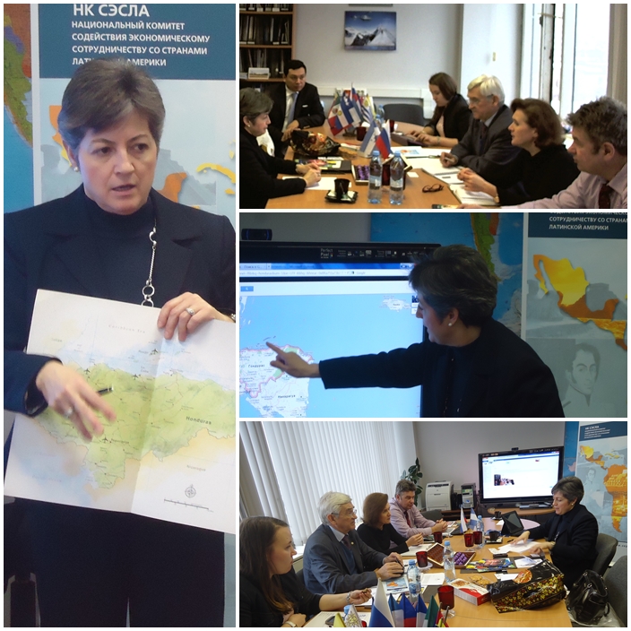 В Дирекции НК СЭСЛА состоялись переговоры с Послом Гондураса в России (по совместительству) г-жой Элеонорой Ортес, на которых обсуждалась возможность установления сотрудничества в различных областях. Особое внимание уделено вопросам поставок транспортной и дорожно-строительной техники, туризму. Переданы предложения по малым гидроэлектростанциям «МНТО ИНСЭТ» и телекоммуникационным продуктам и решениям НТЦ Протей. Достигнута договорённость о взаимодействии в рамках поддержки заявки г.Екатернбурга в качестве места проведения Всемирной универсальной выставки «Экспо» в 2020 году.