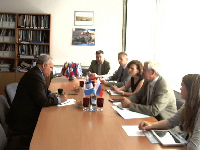 В Дирекции НК СЭСЛА состоялись переговоры с Послом Гватемалы в России г-ном Эстуардо Менесес по вопросам дальнейшего развития двустороннего торгово-экономического сотрудничества и подготовки к международной выставке ИННОПРОМ 11-14 июля 2013. На встрече представитель компания ПРОТЕЙ передала предложения для операторов мобильной и фиксированной связи, для поставщиков услуг Интернет (системы анализа пакетного трафика), для служб комплексной безопасности города и аварийного оповещения (система 911).