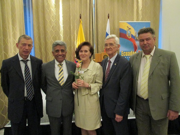 Дирекция и советники НК СЭСЛА приняли участие в торжественном вечере, посвященном вручению верительных грамот в Кремле Президенту В.В.Путину новым послом Эквадора в России господином Хулио Сесаром Прадо Эспиносой. В своем выступлении перед гостями Посол поделился впечатлениями от приветственного слова российского Президента, обращенного к новым послам в Кремле. В частности Владимир Путин сказал: «16 июня исполняется 70 лет установления дипломатических отношений с Республикой Эквадор – надёжным партнёром России в Латинской Америке. У нас близкие взгляды на международные и региональные проблемы. Российские деловые круги готовы к реализации новых совместных проектов»... Посол Хулио Сесар Прадо Эспиноса заверил присутствующих, что готов к работе над расширением отношений между Эквадором и Россией